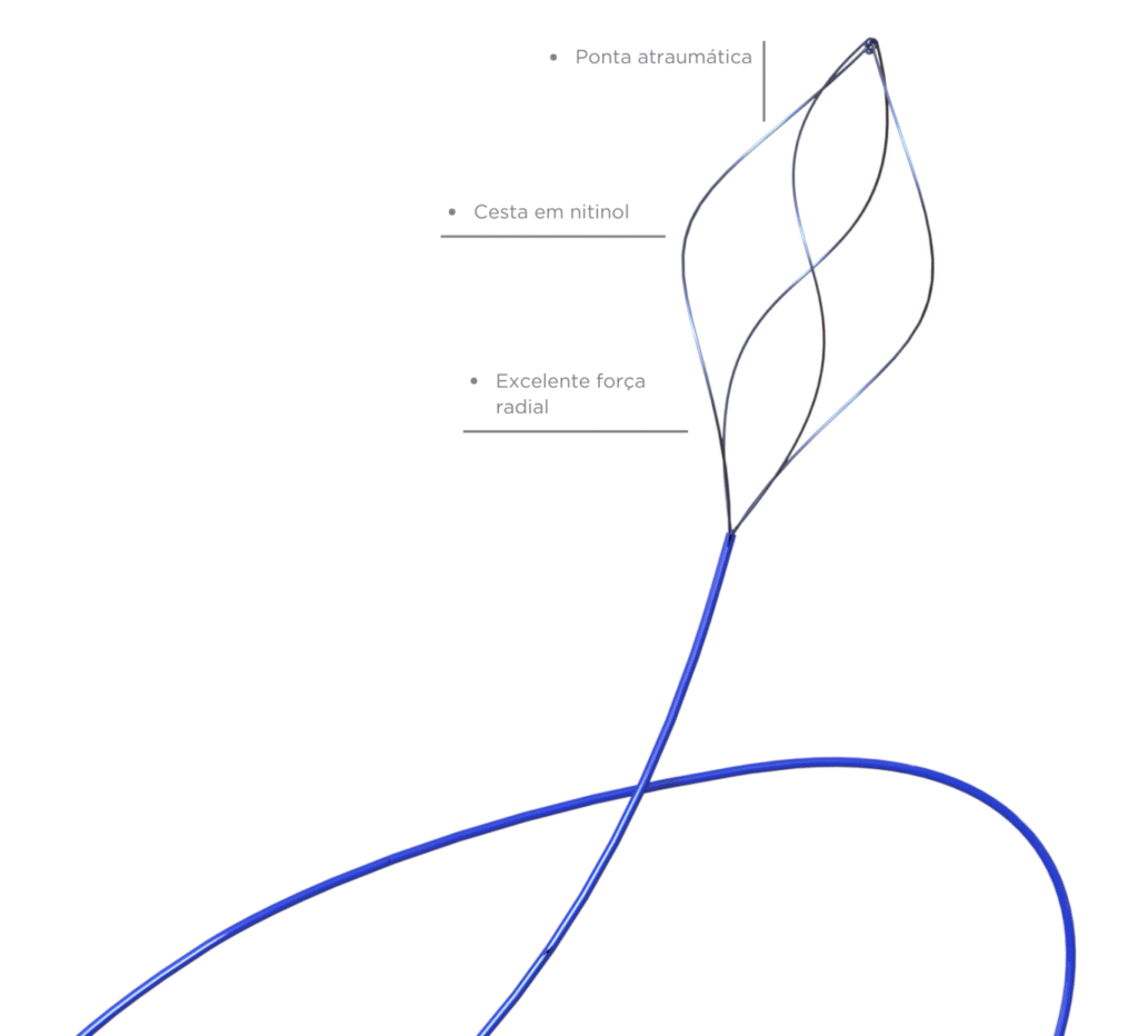 • Cesta em nitinol – A natureza do nitinol permite que a cesta volte a forma original mesmo após diversos acionamentos